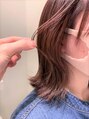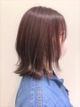 肩上の長さでくびれのある、切りっぱなしボブ!ピンクベージュで優しい印象に!