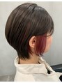 くびれの綺麗なショートボブ インナーカラー:ブリーチ1回ピンクバイオレット