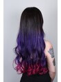 ナチュラルヘアからバイオレットからホットピンクのグラデーションカラー。ロングヘアを生かしてパツンとしたラインが出ないようにグラデーションの幅を目一杯に取ったスタイルです!会社が厳しくてもお団子で隠せるのもGOOD!