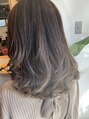 中間から毛先をブリーチ。ハイライトで白髪を目立たなくさせ、グレー多めのグレージュで透明感重視のデザインです。髪の毛の負担を第一に考えて施術させて頂きます。