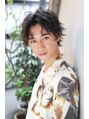 アウトラインは短くカットしながらも刈り上げずに色気のある質感を残しました。パーマは表面にゆるいツイストパーマをかけてサイドは外ハネになるようにワンカールのパーマをかけます。前髪を上げるようにドライヤーで整えてジェルワックスでスタイリング。