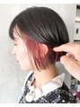 似合わせ、再現性のあるカットが得意◎ハイライトカラーやインナーカラー得意◎ぱっつんボブ/インナーカラー/インナーピンク/ピンクカラー/フレンチガーリー/暖色系カラー透け感のあるインナーカラーとコロンと可愛いミニボブの相性は抜群です!