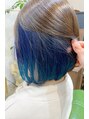 インナーカラーを海のような綺麗なブルーのグラデーションに!根元から中間は深いネイビーブルー。毛先はターコイズブルーのグラデーションカラーです!ホイルブリーチで二回しっかり色を抜いてオンカラーしました!ブリーチ必須カラーなのでご相談ください♪