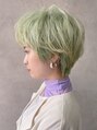 顔周りを包む様にマッシュラインでカットされたショートスタイル。ブリーチしてパステルグリーンを入れ、春らしい柔らかい動きもプラスしてくれるので重くなりすぎずに可愛いスタイルを楽しめます!