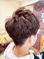 主張し過ぎない程度のツーブロックとネープの刈上げでスッキリ感を出しつつ、これから伸ばしたいそうなので長さはキープで質感調整してからカラーリング。やさしいイメージのベージュ系9トーンで軽さをプラスしてあか抜けた感じを表現してみました。