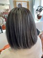 カットは伸ばしてるので、長さは変えずに整えるのみで、肩に着くレングスなので毛量も調整のみ!カラーはケアブリーチをしてハイライト入れてからのアッシュグレーでベースを染めてます。流してから再度ハイライトにカラーをオンしてます。