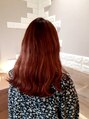 ブリーチを何回もされている方なので、薬剤除去とトリートメントはいつもされています。オンカラーできれいなレッドオレンジが出ています。手触り感はサラサラです。