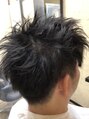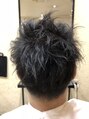 セニングでザクザクに削いであります。サイドはかぶさるように刈り上げて、バックは自然につなげてあります。