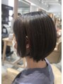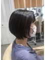 丸みのあるショートスタイルです!頭の丸みを出すようにカットしていますので乾かすだけできまるお手入れ簡単スタイルです!カラーは自然なブラウンの色味でツヤをだしています!