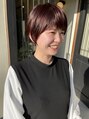 収まりの良いマッシュショートです。耳にかけても可愛くなる様に顔周りはレイヤーをいれてあります。カラーはピンクオレンジで上品に。