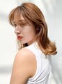 透け感のある前髪がポイントのミディアムに明るめのオレンジベージュで柔らかさのある暖かい季節におすすめのスタイルです。※状態によってはブリーチが必要な場合があります。