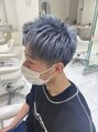 ツーブロックにバックは刈り上げでさっぱりショート。アイロンいらずのセットはアップバングで楽です!カラーはシルバー系のプラチナムシルバーカラー。色落ちしても紫シャンプーで黄色味を消してあげると、透明感あるカラーが、楽しめます!