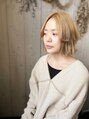 外ハネがかわいい切りっぱなしボブ。透明感満点のベージュカラーで柔らかく、品良く。【トリートメント】【ヘッドスパ/ダブルカラー/ハイライト/インナーカラーも人気】