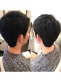癖をいかしたメンズショートのスタイルです。刈り上げないギリギリの長さにすることによりワックスでニュアンスを出すことができます。