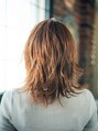 人気ナンバーワンのウルフミディアム。前髪は薄くし襟足外ハネ、切りっぱなし風に飽きた方オススメのウルフカットです。今年のウルフカットはやや重めのシルエットがいい!ハイライトでさらに動きを出してあげると◎