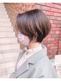 前下がり丸みショートボブアッシュブラウン耳掛け【近藤】横浜/ホットペッパービューティー