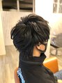 トップを軽めにして、パーマをかけたマッシュウルフスタイル/亀戸駅北口/錦糸町/平井/西大島/白髪染め/インナーカラー/学割U24/エアリーミディ/ハイライト/トリートメント/ヘッドスパ/くびれミディ/イヤリングカラー/美容液カラー/メンズカット/パーマ/亀戸