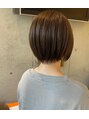 前下がりのショートボブに少し明るめのアッシュベージュカラーが素敵です。ハンドブローで綺麗に仕上がります。