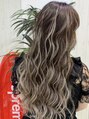 バレイヤージュを施し赤味のない外国人風に!カラーはくすみ感を強調し最新のデザインカラーを外国人風に仕上げ、当店オリジナルの人毛レミーエクステをチョイスし長さとボリューム感をだしてアレンジ多彩な万能スタイルで巻き髪スタイルを楽しめます