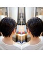 バッサリイメチェン!ロングからハンサムショートに^ - ^又ビフォー撮り忘れた(T-T)見ての通り収まりやすいカッコいいハンサムショートカラーはナチュラルな白髪染めで艶がきれいに出るように配合^_^喜んでもらえてええ感じ