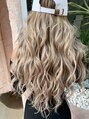 バレイヤージュを施し赤味のない外国人風に!カラーはくすみ感を強調し最新のデザインカラーを外国人風に仕上げ、当店オリジナルの人毛レミーエクステをチョイスし長さとボリューム感をだしてアレンジ多彩な万能スタイルで巻き髪スタイルを楽しめます
