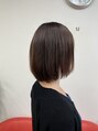 内巻きになるよう肩上までカット。サイドも外にハネないよう、前上がり気味に♪