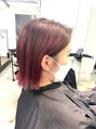 ベースはブリーチ履歴がある状態で濃いめのピンクでしっかり色味が分かる様にオンカラーをしてパツッとしたカットラインで切りっぱなしスタイルにしました