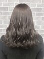 セミロングのレイヤースタイルです。トップから少しレイヤーを入れてるので、あまり重すぎない様にしてます。毛量は、ほどほどに重めに残し、32mm.のコテで、内巻き、外巻きと、交互に巻き返し。カラーは、ラベンダーアッシュ系のパール色で柔らかさを表現。