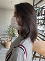 大人カジュアル、ラフな毛流れのミディアムヘア。作り込みすぎないのが大人な余裕がでます。前髪はお顔のカタチにあわせて小顔に見える位置につくります。