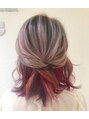全体に柔らかいピンクアッシュカラーとインナーには8色の色をちりばめたオシャレヘアカラー☆おろしてたり巻いたりはもちろんハーフアップまで楽しめるかわいいカラーです^^