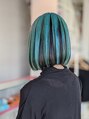 トップのみをブリーチし、それ以外はトーンダウン。ブリーチ部分にはマーメイドグリーンをON。