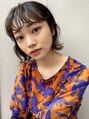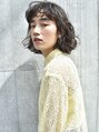 毛先に大きめのパーマをかけた、柔らかなボブスタイル*重く見えがちなボブシルエットも、パーマとオン眉で軽やかに♪カラーは柔らかなブラウンベージュに。