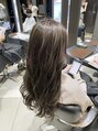 透明感のあるアッシュベージュのベースに、細かくハイライトをいれたカラーです。お仕事で派手なカラーがダメな方やママさんにもオススメです♪アレンジや巻き髪にも相性抜群です。