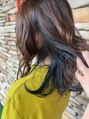 ネイビーのインナーカラーです。さりげなく、でもしっかりと!暗めのネイビーならブリーチも一回でできます!