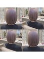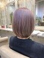 ダブルカラーでホワイトラベージュにする事で柔らかいミニボブに。ケアブリーチでいたわる事でツルンとまとまります。