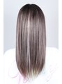 アッシュミルクティーを薄めた色でベースを染めて、ペールピンクのシールエクステでアクセントを効かせたカワイイカラー!