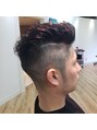 最近メンズのお客様にオーダーが増えているフェードカットのバーバースタイルにトップはパーマをあてて高さを出しています。