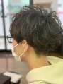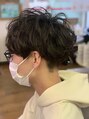 ツーブロックのマッシュスタイル。スパイラルパーマでランダムに動きが出るようにしました。朝のセットがワックスを揉み込むだけで決まります。