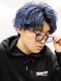 ダブルカラーでブリーチを2回してブルーカラーに!センターパートの束感スタイルで躍動感を!学割U24クーポンもございますのでお気軽にお問い合わせください!<理容室>