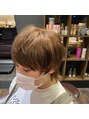 トップには丸みが出るようにマッシュっぽく、襟足部分は軽くなりすぎないように整える。