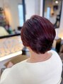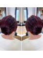 元々明るすぎないハイライトを入れているので それを活かしてもう一度キレイなピンクをのせています。カットはライフスタイルに合わせて 耳にかけやすいスタイルのため少しアシンメトリーでボブスタイルにしています(^^)