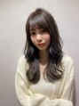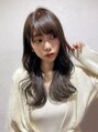 大人可愛いナチュラルカールスタイル。作りこみ過ぎないカールと柔らかさのあるグレージュブラウンカラーで透明感ある柔らかい大人の雰囲気に。また、前髪をおろし流しでカットし大人っぽさをUP!!耳掛けをする事で女性らしさも出しました。