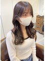 毛先は重ためにカットして顔周りにレイヤーを入れて巻いた時に可愛く仕上がるようにカット!ハイライトが入ってる髪に暗めのグレージュを入れて透け感をUP!韓国スタイル人気です!