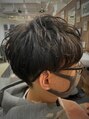 周りはすっきりと刈り上げ、トップはマッシュベースに残し、スパイラルパーマで動きをつけたショートマッシュ!!ワックスはツヤ系のジェルやグリースでのスタイリングがおすすめです!鶴岡29042021