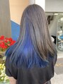 ケアブリーチで全体をブリーチしました。ブリーチしたいけど初めてで、ダメージやお色みわからない方はご相談下さい。トップはシルバーグレーカラー・アンダーはブルーカラーです綺麗なカラーを長く楽しめるようにご提案いたします