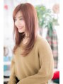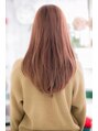 斜めバングと毛先ワンカールのストレート。ナチュラルだけど女の子らしいモテのテッパンスタイル。スポンテニアスカラーで個性的に仕上げてオンリーワンなヘアにすると旬顔。オレンジ系でポップな雰囲気にしたり、ピンク・レッド系でグラマラスにしてもOK!