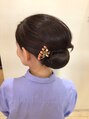 お着物で結婚式へお呼ばれ。普段はボブスタイルのお客様です。この日の為に少し伸ばしました。襟足の方にまとめました。できているシニヨンをつけて着物ヘアです。ポイントは自然にシニヨンとなぜませることですね。