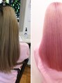 【気に入ったスタイルは『ブックマークする』ボタンを押してご来店時お見せください】ブリーチは二回以上がおすすめ♪【ツヤ感&透明感大人ピンクカラー】数種類のオリジナルの前処理&後処理剤を駆使したケアブリーチ♪人と被らないカラーを楽しみましょう!