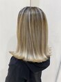 高めな位置から毛先にかけてフルブリーチ!伸びっぱなしの根元を生かし、表面にはハイライトを頭の形と生え癖、分け目に合わせて入れました!ほぼ全頭ブリーチのハイトーンカラーなのでケアブリーチやトリートメントなどケアは必須になりますよ☆