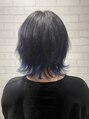 人気のインナーカラー★ブリーチ後、オンカラーは暗めのブルーです!紫シャンプーでメンテナンスしていただくと黄ばみがなくなり色落ちも綺麗なブロンド(ベージュ)になります!ウルフカットで外ハネの範囲にブルーが出てお洒落度アップ!
